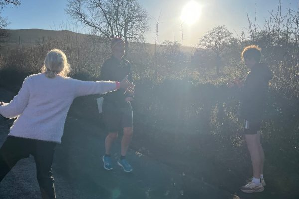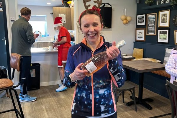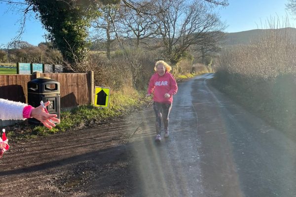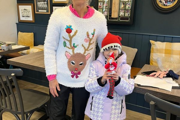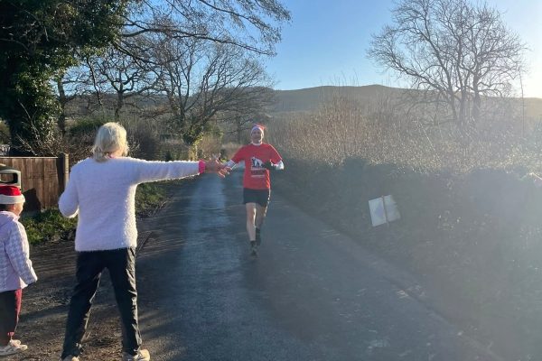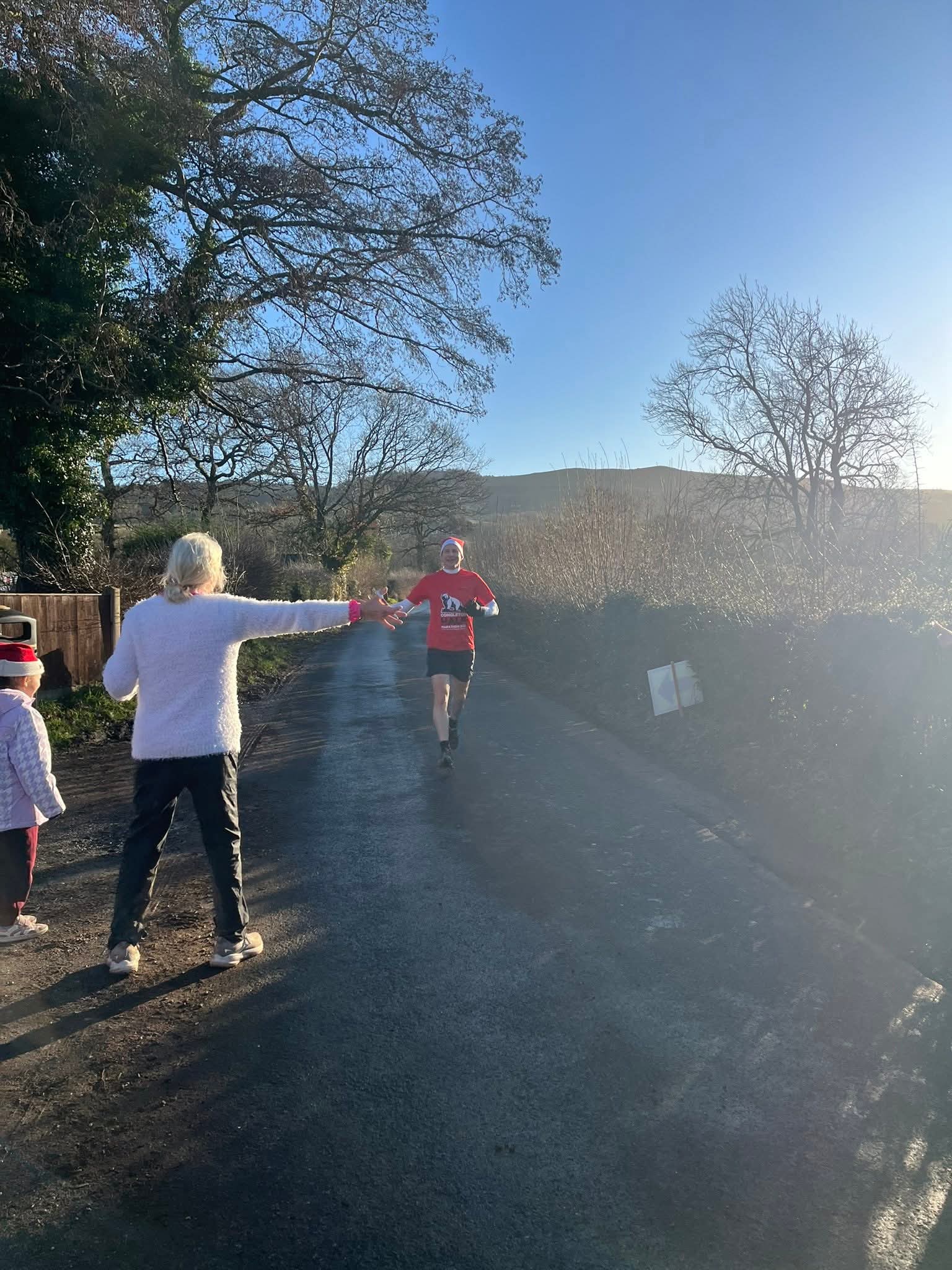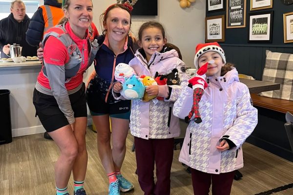 Cheer leaders at the finish were Mary and Lizzy Pattison with their ‘swisshmellows’ and elf on the shelf.