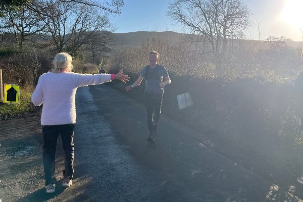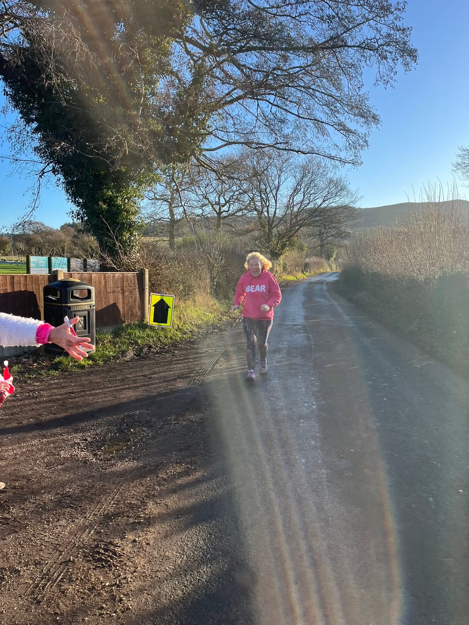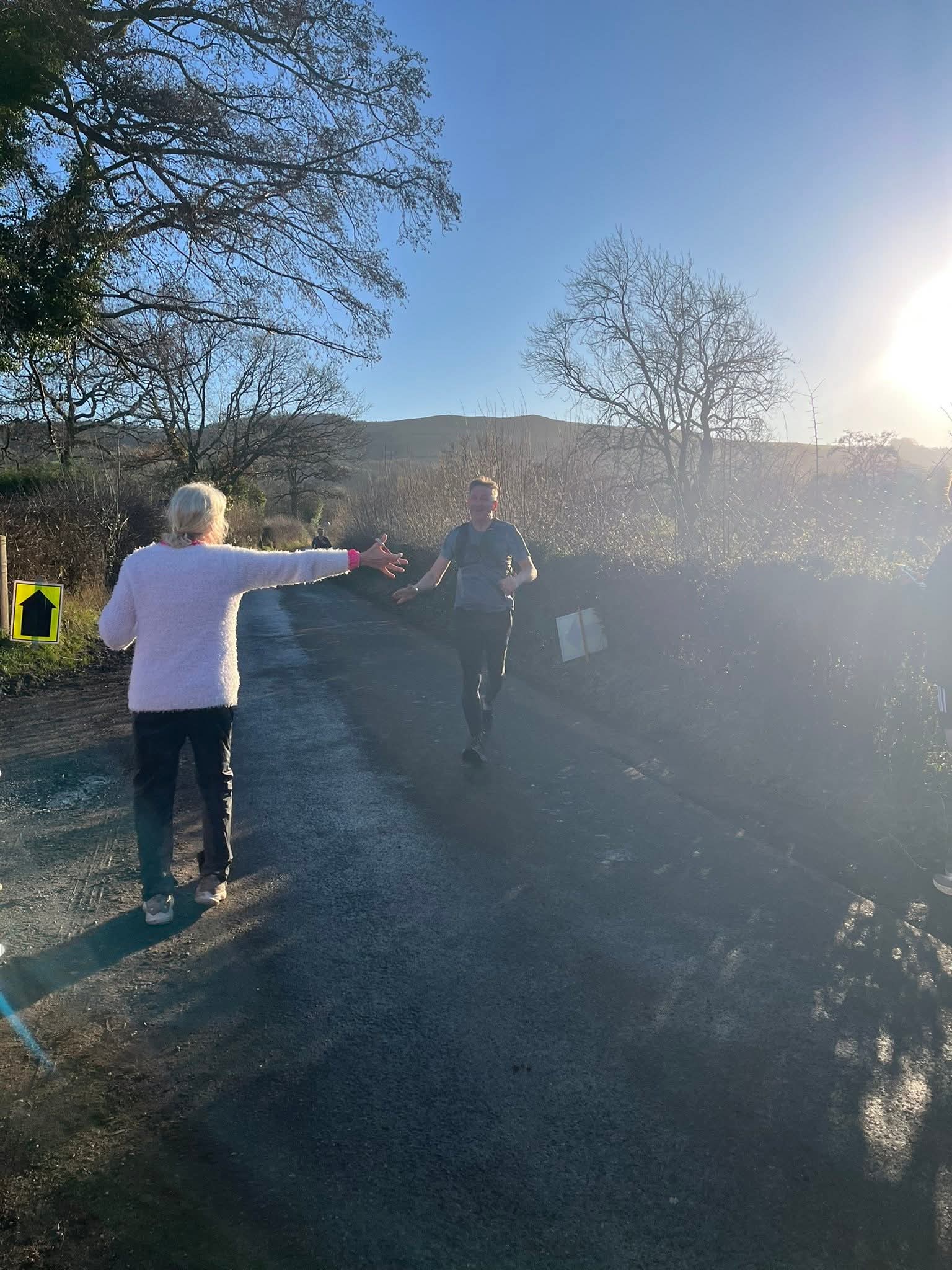 Our marshals were locals Neil Bates and Bailey his dog, Helen Walker, Chris Pattison, Steve Mott and cowbell queen Kathleen O’Donnell at the top of the hill.