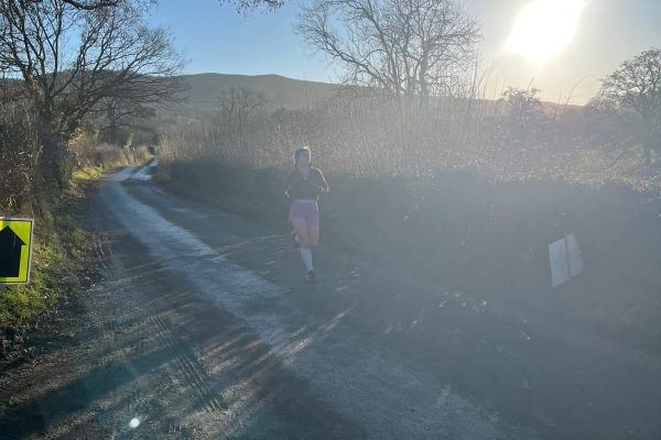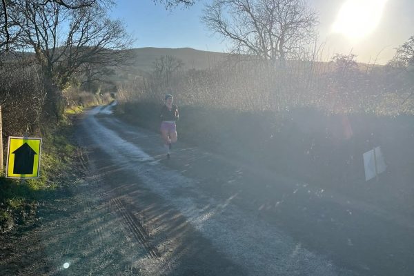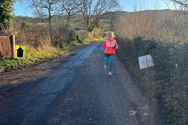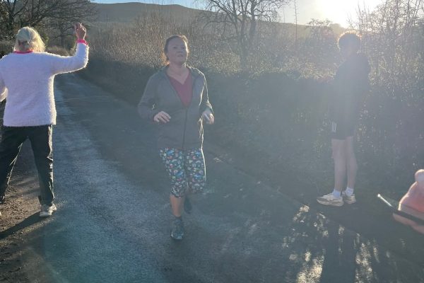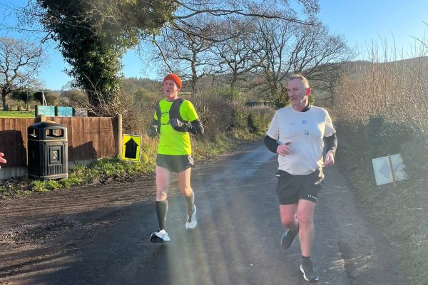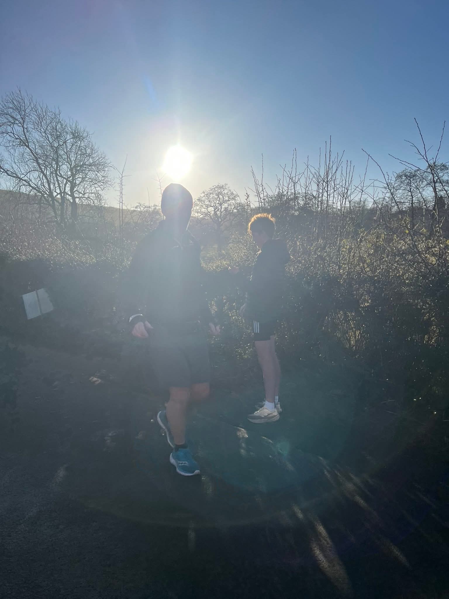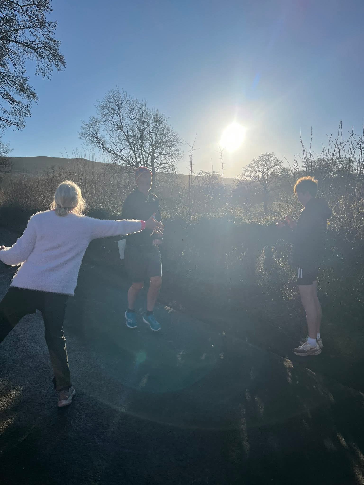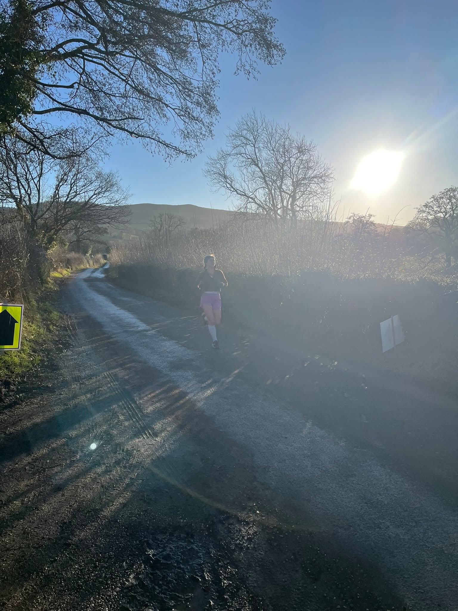 It was a lovely crisp morning with two icy areas, a small one at the turn from Whistons onto Meg lane and a larger one around a large puddle in front of Thickwithens farm. The other interesting obstacle was an open farm gate marked by a traffic cone and we added a straight on sign at the side up the road for runners. Some runners encountered a tractor.