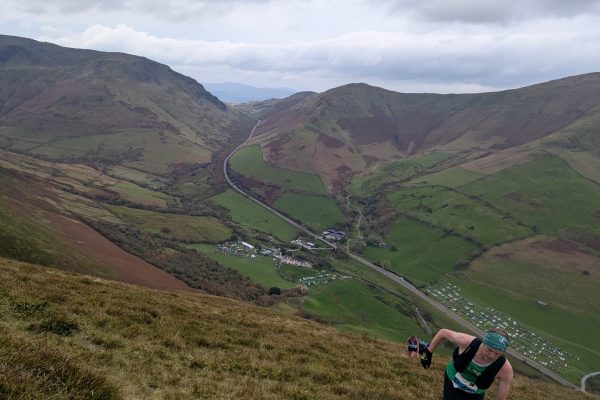 1 mile down of steep, grassy and insanely steep descending. If you’re a good descender this the kind of thing you would love, I am not a good at descending. A few slips (standard for me), attempted bum sliding, more swearing and wishing the photographer would kindly point his camera away from the angry fell runner, I eventually reach the bottom. 3mins to the finish a Marshall tells me, nearly there. It’s a typical sprint finish trying to look like I know what I’m doing and thinking a few seconds off my finish time will make a difference. I attempt to catch my breath and hear a voice cursing me in my head, it’s those quads again asking my why I do this, but it’s all over now.