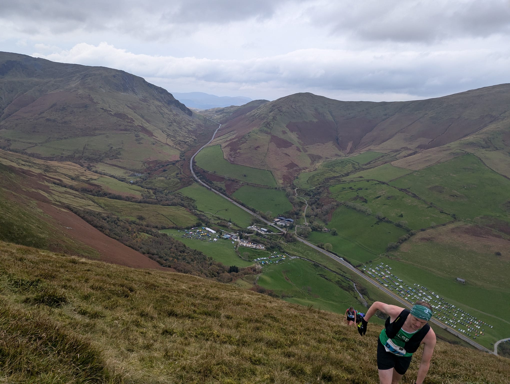 As we approach the camp setup, it’s comforting to see familiar faces, but also the faces of those that you have seen in Fellrunner numerous times, which by now the realisation for what I have signed up for is more than apparent. The next 4-5hrs can only be described as the kind of emotions you go through before a night out on the juice mixed with the morning of getting married. For someone who doesn’t deal very well with nerves and suffers from OCD, my head is needless to say in pieces. The plus side is I’ve found out it’s not 4.5 miles on my leg, just a mere 2 miles, bonus! Although looking at what is above me is a concern.