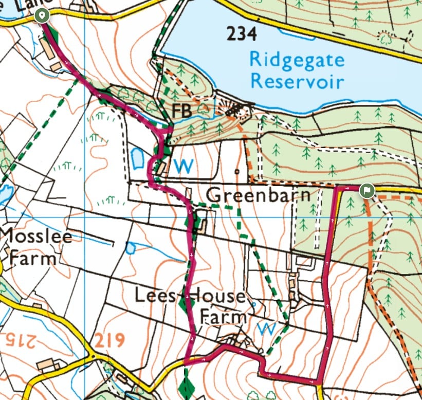 Note 7: There is a diversion at the start of the route due to a closed footpath near Ridgegate Reservoir – details will be provided (see below). This diversion will add 5-10 minutes to your run time.