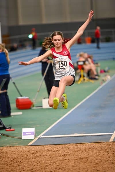 In U13s Ben Hunsley and Emma Bedoya both competed for the first time at the EIS in Sheffield – both setting PBs; Ben ran 60m and Emma ran 60m Hurdles and both long jumped. Their U13 teammate Georgia Evans set PBs and broke club records in 60m, 200m and Long Jump.